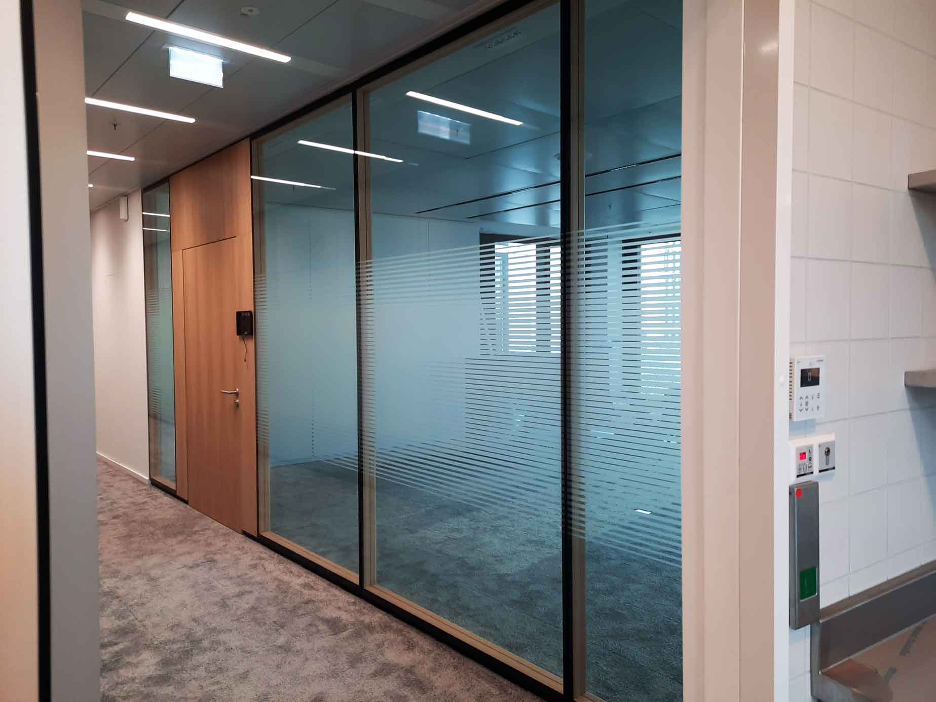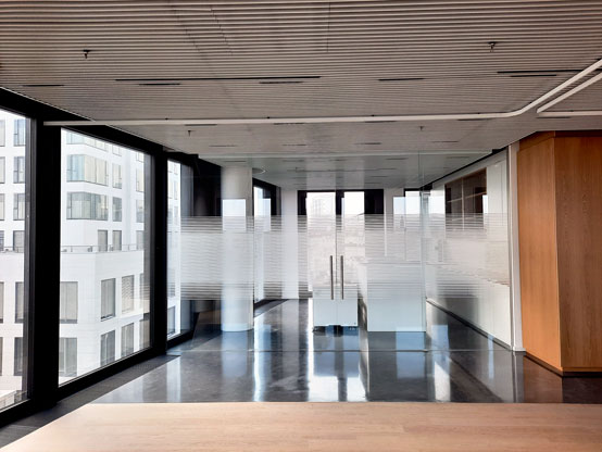 Büros (z. B. Konferenzräume, Trennwände, Glastüren)